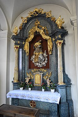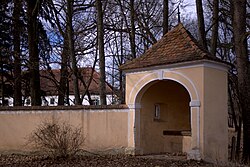 Um die Kirche wurden drei barocke Initienkapellen erbaut. Auf dem Kirchenvorplatz steht eine Mariensäule mit dem Wappen der Kottulinsky, geschaffen von Veit Königer (1765).