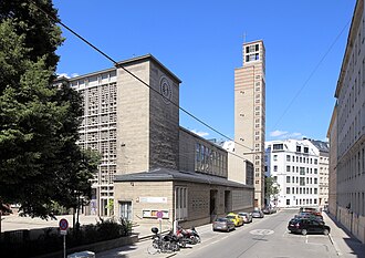 | Südwestansicht der röm.-kath. Pfarrkirche hl. Johannes Don Bosco in Neuerdberg, ein Ortsteil des 3. Wiener Gemeindebezirkes Landstraße . .Die Kirche wurde nach Plänen des Architekten Robert Kramreiter von 1954 bis 1958 errichtet. | Eigenes Werk | C.Stadler/Bwag | Datei:Erdberg (Wien) - Pfarrkirche Don Bosco (3).JPG | |