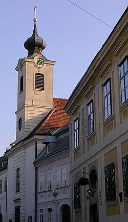 | Die Pfarrkirche hl. Apostel Thomas in Nussdorf , ein Bezirksteil des 19. Wiener Gemeindebezirkes Döbling . Die schlichte josephinische Kirche wurde von 1784 bis 1789 nach Plänen von Josef Gerl erbaut, nachdem Nussdorf im Zuge der josephinischen Reformen eine eigenständige Pfarre wurde. | Eigenes Werk | C.Stadler/Bwag | Datei:Nussdorf (Wien) - Kirche.JPG | |