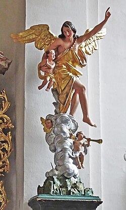 Die Schutzengelgruppe an der Ostwand der Südkapelle wurde in der ersten Hälfte des 18. Jahrhunderts geschaffen.