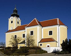 Sie gehört zum Dekanat Sitzendorf im Vikariat Unter dem Manhartsberg und steht unter Denkmalschutz (Listeneintrag). Die geostete spätbarocke Saalkirche mit Westturm steht etwas erhöht nördlich der Ortsmitte.