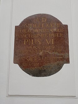 | Gedenktafel Papst PIUS VI | Eigenes Werk | Cnarten | Datei:Pfarrkirche Rennweg - Gedenktafel Pius VI.jpg | |