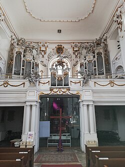 Die reichgeschmückte Orgel nimmt die gesamte Empore ein und wurde vermutlich zwischen 1770 und 1774 vom Wiener Orgelbauer Franz Xaver Christoph erschaffen. Im Stil des Barock ist diese von zahlreichen Engeln umgeben. Über allem thront die Patronin der Kirchenmusik Cäcilia von Rom. Das rein mechanische Schleifladeninstrument wurde 1983 von Helmut Allgäuer restauriert.