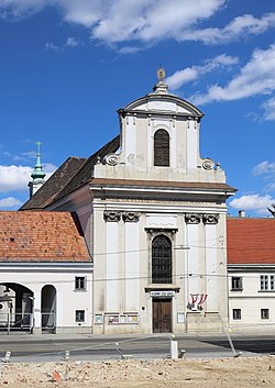 Im Jahre 1768 wurde die Waisenhauskirche Mariä Geburt nach den Plänen des Architekten Thaddäus Karner durch Baumeister Leopold Grossmann errichtet. Die Einweihung erfolgte am 7. Dezember 1768 durch Fürsterzbischof Kardinal Christoph Anton Graf Migazzi in Anwesenheit der Kaiserin Maria Theresia.[1] Eigens für diesen Anlass komponierte Wolfgang Amadeus Mozart eine feierliche Messe, vermutlich die Messe in c-Moll KV 139, die mit der Einweihung zur Uraufführung kam, denn er „dirigierte als ein zwölfjähriger Knabe diese feyerliche Musik in Gegenwart des kaiserlichen Hofes“.[2][3] Im Jahre 1770 wurde die Kirche auf das Patrozinium Mariä Geburt geweiht. Nach Auflassung der Wiener Bürgerspitalkirche wurde der Leichnam des Freiherrn Richthausen von Chaos, Gründer der Chaos’schen Stiftung, in die Waisenhauskirche am Rennweg überführt.