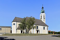 1703 wurde eine Pfarre wiedererrichtet, die schon zu vorreformatorischen Zeiten bestanden hatte.[2] Der Kirchenbau aus den Jahren 1724/25 wurde 1937 abgebrochen. Anschließend entstand im selben Jahr ein Neubau nach den Plänen des Wiener Stadtbaumeisters Erich Stieböck, dessen Altarraum in den Jahren 1976 und 2004 umgestaltet wurde.[3]