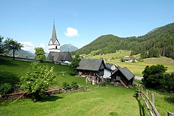 | Zell Pfarre , ein Dorf in der Gemeinde Ferlach in Kärnten / Österreich / Europäische Union . Ansicht gegen Norden. Im Hntergrund der Freiberg (Setische) mit 1.923 m Seehöhe. | Eigenes Werk | Johann Jaritz | Datei:Zell Pfarre 25052007 04.jpg |
