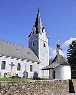 Der Karner südlich der Kirche ist ein gotischer Rundbau mit einer Rechteckapsis und einer 1999 errichteten Vorlaube. Das Kegeldach wird von einem Dachreiter mit Zwiebelhelm bekrönt. Der Karner dient heute als Aufbahrungshalle.