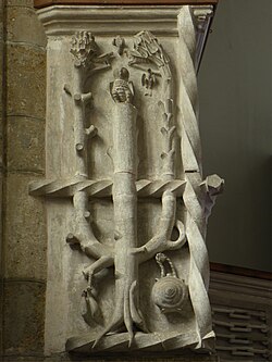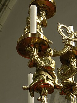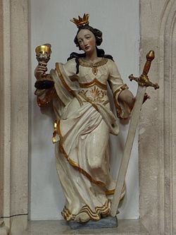 | Kirchenfestungsanlage hl. Oswald - einer der Bergmänner am Barbaraluster | Eigenes Werk | Haeferl | Datei:Eisenerz - Pfarrkirche hl Oswald - Bergmann am Barbaraluster.jpg | |