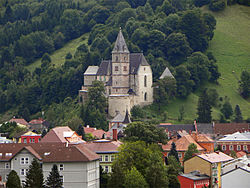 | Kirchenfestungsanlage hl. Oswald mit Johanneskapelle und Kapellenbildstock mit Blick über Eisenerz | Eigenes Werk | Haeferl | Datei:Eisenerz - Wehrkirche hl Oswald - Ansicht vom Rundwanderweg mit Blick über Eisenerz.jpg | |