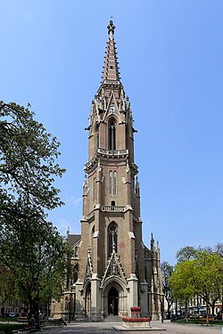 Am 17. Mai 1866 erfolgte die Grundsteinlegung durch Kardinal Othmar von Rauscher. Die Planung und Durchführung oblag Dombaumeister Friedrich von Schmidt, die Bauleitung dem Baumeister Josef Hlávka. Der Bau der Kirche verzögerte sich auf Grund der Wiener Weltausstellung 1873, aus Mangel an Arbeitern.[8]