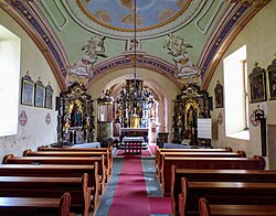 | Dieses Bild zeigt das in Österreich unter der Nummer 81924 denkmalgeschützte Objekt. ( Commons , de , Wikidata ) Kirche St. Stefan bei Niedertrixen, Gemeinde Völkermarkt, Kärnten. Inneres: Deckengemälde, drei Altäre | Eigenes Werk | Niki.L | Datei:Kirche St. Stefan bei Niedertrixen Innen vorne.jpg | |