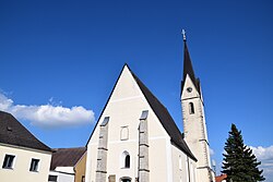 Um 1235 ließ Graf Johann I. von Schaunberg eine katholische Pfarrkirche erbauen. Das Bauwerk mit dem 52 m hohen Turm ist Johannes dem Täufer geweiht. Der Graf war Mitglied des Johanniterordens und übergab die Kirche als Filialkirche den Johannitern von Mailberg,[1] den späteren Maltesern,[2] die diese um eine Kommende erweiterten.