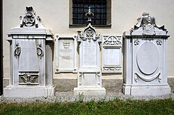 | Empire-Grabsteine der Familie Moro an der Außenwand der Pfarrkirche hl. Florian in Stein im XIII. Stadtbezirk „Viktring“, Klagenfurt , Kärnten , Österreich , EU | Eigenes Werk | Johann Jaritz | Datei:Klagenfurt Viktring Stein Friedhof Empire-Grabsteine Familie Moro 20062006 61.jpg | |