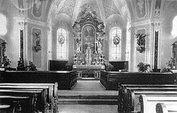 | Innenansicht der barocken Pfarrkirche St. Laurentius zu Wörgl (Tirol) vor der Kirchenerweiterung 1912. | Homepage der Stadt Wörgl 1 | Thom16 | Datei:PfarrkircheWoergl barock.jpg | |