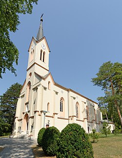 | Südansicht der Pfarrkirche hl. Kunigunde in Wultendorf, ein Dorf in der niederösterreichischen Marktgemeinde Staatz. Die Kirche mit Westturm wurde auf einer Anhöhe (Wachtberg) im Osten des Ortes von 1872 bis 1874 im neugotischen Stil errichtet. Damit ersetzte man eine weiter nördlich situierte, baufällige spätgotische Kirche. | Eigenes Werk | C.Stadler/Bwag | Datei:Wultendorf (Gemeinde Staatz) - Kirche.JPG |
