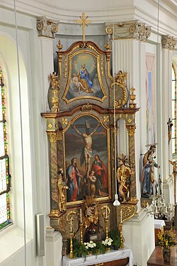 Die Einrichtung entstand nach dem Brand (1782), die Seitenaltäre konnten allerdings gerettet werden. Das Gehäuse der Orgel stammt von Josef Gast aus 1795.