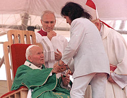 | Papa João Paulo II abençoa o cantor Roberto Carlos durante missa no Aterro do Flamengo. | Agência Brasil 1 | José Cruz/Abr | Datei:John Paul II Brazil 1997 1.jpg |