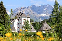 | Im Hintergrund erstreckt sich der Wilde Kaiser | Eigenes Werk | Edgarhoman | Datei:Schloss Münichau.jpg |