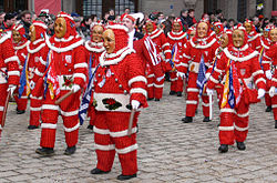 | Plätzlerzunft Weingarten, Figur: (Roter) Plätzler Veranstaltung: Narrensprung beim Narrentreffen Meßkirch 2006 | Selbst fotografiert | Photo: Andreas Praefcke | Datei:Plätzlerzunft Weingarten Plätzler Narrentreffen Meßkirch 2006 1.jpg | |