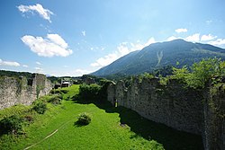 | Plainburg, innerer Burghof, im Hintergrund der Untersberg. (Blickrichtung Osten) | Eigenes Werk | Luitold | Datei:Plainburg 05.jpg | |