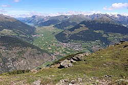 | Gigantischer Ausblick vom Gipfel des Glurnser Köpfl in Richtung Mals , Laatsch (Mals) , Burgeis , Haider- und Reschensee . Planeiler Berge und die Gegend um die Weisskugel bis zur Bergkette im Saldurkamm - Monti di Saldura über dem Matscher Tal (rechter Bildrand). Das Glurnser Köpfl (italienisch Monte di Glorenza) ist ein 2395 m.ü.M. hoher Berg. Er gehört zu den nördlichen Ortler-Alpen im Westen von Südtirol. | Eigenes Werk | Uwelino | Datei:Mals, Laatsch, Burgeis, Haider und Reschensee.jpg | |