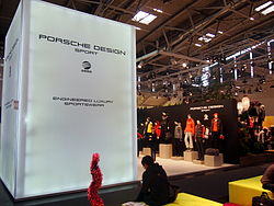 Ruhebereich mit Porsche Design Aufsteller auf der ISPO 2014 in München | Eigenes Werk | Ordercrazy | Datei:Ruhebereich mit Porsche Design Aufsteller ISPO 2014 (02).jpg |