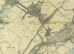 | Ausschnitt der historischen Landkarte: Gradkartenblatt Zone 14 Colonne XV Section a3 (später 4857/1c). Pottendorf, Landegg, Wampersdorf in Niederösterreich, Wimpassing an der Leitha, Ebenfurth, Hornstein im Burgenland, Österreich. Franzisco-josephinische (3.) Landesaufnahme der österreichisch-ungarischen Monarchie. Aufnahmeblatt 1:12.500. | Archiv des Militärgeographischen Institutes | Österreichisch-Ungarische Monarchie, Militärgeographisches Institut | Datei:Aufnahmeblatt 4857-1c Pottendorf Landegg-cropped.jpg |