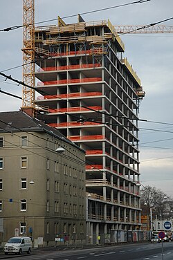 | Neuer Firmensitz der Energie AG Oberösterreich in Linz, nahe dem Hauptbahnhof und direkt neben dem Landesdienstleistungszentrum. Das Gebäude wird bei Fertigstellung 73 Meter hoch sein und 19 Etagen aufweisen | Selbst fotografiert | Otto Normalverbraucher | Datei:EnergieAG-Zentrale Bau.jpg | |