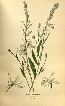 | GAURA LINDHEIMERI | https://www.flickr.com/photos/biodivlibrary/10575024713 | Bois, D.; Frederick Warne (Firm); Herincq, B.; Step, Edward; Watson, William | Datei:Favourite flowers of garden and greenhouse (10575024713).jpg | |