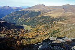| Blick von der Bretthöhe (2.264 m) auf den Eisenhut (2.441 m) und den Wintertalernock (2.394 m), gehörend zu den Nockbergen in Turrach, Gemeinde Predlitz-Turrach , Bezirk Murau, Steiermark / Österreich / EU | Eigenes Werk | Johann Jaritz | Datei:Eisenhut und Wintertalernock 25102013 659.jpg | |