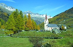 | Talschluss Ahrntal mit Heiliggeistkapelle | Freundlicherweise zur Verfügung gestellt vom Tourismusverein Tauferer Ahrntal | Der ursprünglich hochladende Benutzer war Fedi in der Wikipedia auf Deutsch . Uploaded to Commons by Körnerbrötchen . | Datei:Talschluss Ahrntal mit Heiliggeistkapelle.jpg | |