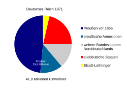 | Anteile der Einwohner des Deutschen Reiches von 1871, verteilt auf Preußen sowie einige Staatengruppen. | Eigenes Werk | Ziko van Dijk | Datei:Deutsches Reich 1871 Einwohneranteile.svg | |
