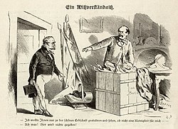 | Bismarck-Album des Kladderadatsch. "Ein Missverständnis." Karikatur auf die Hoffnung Napoleons III., nach dem Deutschen Krieg Saarbrücken annektieren zu können. Bismarck, dessen Preußen Hannover und andere Staaten "ererbt" hat, lehnt dies ab. | Bismarck-Album des Kladderadatsch | Wilhelm Scholz | Datei:Httpdigi.ub.uni-heidelberg.dediglitklabismarck18900044.jpg | |