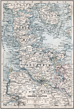 | Herzogtum Holstein | Gliedstaat im Deutschen Bund und Teil des Dänischen Gesamtstaats, abgetreten an Österreich und Preußen 1864 | Österreichische Rechte abgetreten im Prager Frieden vom 23. August 1866 | Teil der Provinz Schleswig-Holstein | 525.000 (vor 1859)[2] |