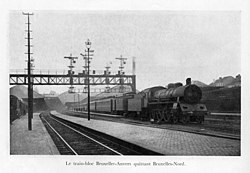 | Bloktrain leaving Brussels North in the 1920's | "Les chemins de Fer Belges" Commemoration catalog with lots off advertisements off railway industry and products. | The International Publishing Corporation, S.A. Bruxelles | Datei:Gare du Nord Bloktrein 1.jpg | |