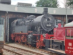 | Dampflok 93 230 "der Bulle", Preußische T 14, Dauerleihgabe des Verkehrsmuseums Dresden, auf der Drehscheibe des Eisenbahnmuseums Dieringhausen | Eigenes Werk | Busbahnhof | Datei:Preußische T 14, Eisenbahnmuseum Dieringhausen.JPG |