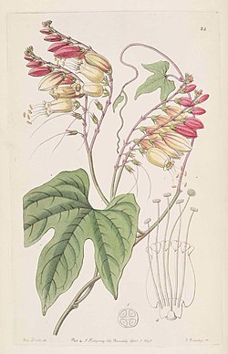 | Ipomoea lobata | Edwards's Botanical Register; Consisting of Coloured Figures of Exotic Plants Cultivated in British Gardens; with their History and Mode of Treatment. London, 28: t. 24 (1842). As Mina lobata . | Botanical Register | Datei:24 Ipomoea lobata.jpg | |