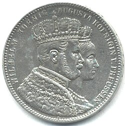| A 3rd century BC gold oktodrachmon shows the paired, profiled busts of the co-rulers of Ptolemaic Egypt. Ptolemy II Philadelphus (285–246 BC; front) wears a diadem and drapery. His sister and wife Arsinoe II (rear) wears a veil. The Greek inscription "ΑΔΕΛΦΩΝ" ( adelphōn ) means "of siblings". | Photographed by myself in Pergamonmuseum Berlin | User:MatthiasKabel | Datei:Oktadrachmon Ptolemaios II Arsinoe II.jpg | |