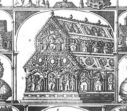 Im 16. Jahrhundert befand sich der Dreikönigenschrein in der Apsiskapelle des Kölner Doms, in einem eigenen mit schmiedeeisernen Gittern verschlossenen Mausoleum. Zur Frühmesse wurde das Gitter aufgeschlossen, so dass die Gläubigen Zugang zum Schrein hatten.[23]