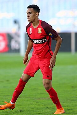 | 2017 UEFA European Under-21 Championship qualification – Austria U-21 (red shirts) vs. :en:Finland national under-21 football team Finnland U-21 (blue shirts) 2-0 (0-0) – 2015-11-13 in Vienna , Austria Arena – The photo shows Pyry Soiri. | Eigenes Werk | Steindy ( Diskussion ) 13:02, 18 November 2015 (UTC) | Datei:AUT U-21 vs. FIN U-21 2015-11-13 (205).jpg | |