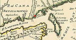 A period map marked with the site of the 1711 Quebec Expedition naval disaster. | From the Boston Public Library digital map collection: http://maps.bpl.org/details_14080/ Call Number: G3400 1732 .M65 | Herman Moll | Datei:WalkerExpeditionMarker.jpg |