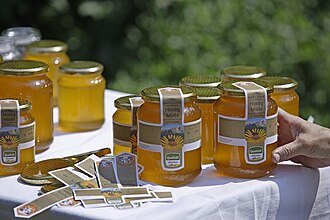 Südtiroler Honig mit Qualitätszeichen Südtirol | Export organization South Tyrol | Frieder Blicke | Datei:Miele - Quality mark South Tyrol.jpg |