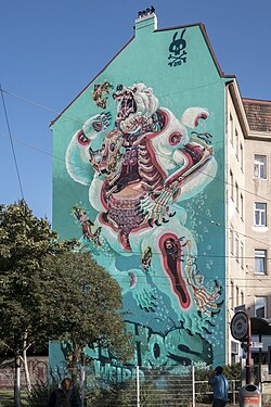 | Signiert: Nychos the Weird | Eigenes Werk | Thomas Ledl | Datei:Quellenstraße 156 Fassadenmalerei.JPG | |