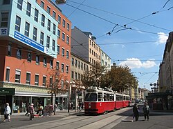 | Fußgängerzone Quellenstraße mit Straßenbahnlinie 6, Wien-Favoriten | Eigenes Werk | Buchhändler | Datei:Quellenstraße 37.JPG |