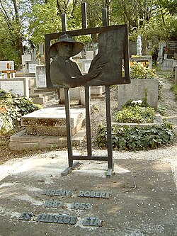 | Berény Róbert síremléke . A festőművészt megmintázó bronz alkotás. Budapesten. Farkasréti temető: 21/1-1-25/26. Lesenyei Márta szobrászművész alkotása (1975) | http://www.geod.bme.hu/staff_h/varga/foto/farkasreti/bereny-r.html | Dr Varga József | Datei:Berény Róbert sírja.jpg | |