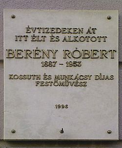 | Commemorative plaque of Róbert Berény, Budapest District XII, Városmajor Street No 36 | Übertragen aus hu.wikipedia nach Commons. | Kispados | Datei:Berényi Róbert emléktáblája XII kerület Városmajor utca 36.jpg | |