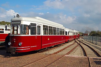 | Triebzug VT 1 der Zillertalbahn ( Bosnische Spurweite 760 mm), der 1963 bis 1966 bei der RTM Rotterdam als M 17.02 − M 17.00 − M 17.01 (Spurweite 1067 mm) im Einsatz stand. 1999 wurde der "Sperwer" genannte Zug durch die Stichting vorheen RTM übernommen, restauriert, erneut umgespurt und im Oktober 2003 wieder in Betrieb genommen. Die beiden Endtriebwagen waren 1954 als elektrische Triebwagen für die DB-Strecke Ravensburg–Baienfurt gebaut (Spurweite 1000 mm, Fahrdrahtspannung 750 Volt) und 1959 durch Betriebseinstellung überzählig geworden. Der mittige Generatorwagen wurde 1963 unter Verwendung einiger alter Teile erbaut. | Eigenes Werk | Spoorjan | Datei:ZB VT1.JPG |