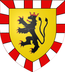 | Coat of arms of the Burgraves of Nuremberg . Blazon : Or a lion rampant sable, queue fourchée, armed, langued and crowned gules, a bordure compony argent and gules and argent. Wappen der Nürnberger Burggrafen aus dem Hause Raabs (1105-1191). | Heraldique piece bordure componee.svg Wappen Brandenburg-Ansbach.svg Limburg New Arms.svg | Heraldique piece bordure componee.svg : S@m Wappen Brandenburg-Ansbach.svg : OwenBlacker Limburg New Arms.svg : Ipankonin derivative work: OwenBlacker Discussion | Datei:Wappen Burggrafen von Nürnberg (Haus Raas).svg |