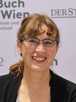 | Die österreichische Kinder- und Jugendbuchautorin niederländischer Herkunft Rachel van Kooij auf der Wiener Buchmesse 2022 . | Eigenes Werk | C.Stadler/Bwag | Datei:Rachel van Kooij - Buchmesse Wien 2022.JPG |