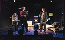 Heinrich Himalaya & David Scheid, Ateliertheater Vienna, Dec. 2017 | Eigenes Werk | Benjamin Bufzk | Datei:Rapper lesen Rapper.jpg |